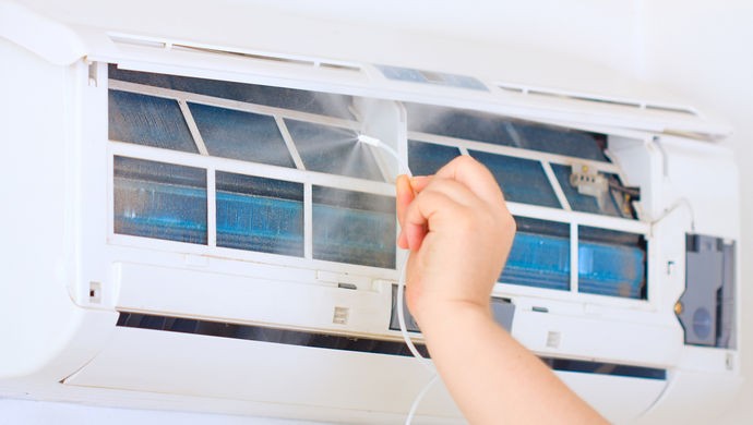 2对空调的散热片、出风口、滚轮等隐蔽部位进行清洗和消毒。